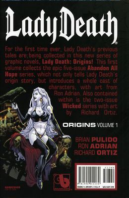 For the first time ever, Lady Death's previous tales are being collected in this new series of graphic novels, Lady Death: Origins! With tons of breathtaking adventures that are, until now, out of print, the Lady Death: Origins series is a perfect way for fans to see what has come before the new Boundless monthly series! This first volume collects the epic five-issue "Abandon All Hope" series, which not only tells Lady Death's origin story, but introduces a whole cast of characters, with art from Ron Adrian. Also contained within is the two-issue "Wicked" series with art by Richard Ortiz. This volume is available in Paperback with a cover by Javier (Crossed) Barreno, a Hardcover by Juan Jose Ryp that is limited to 2,500 copies, and a special Signed Hardcover with a new cover from Richard Ortiz and featuring a signature plate from creator and writer Brian Pulido, which is limited to just 1,250 copies!