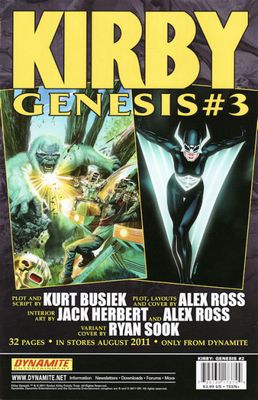Writer: Kurt Busiek Penciller/Inker: Alex Ross, Jackson Herbert Covers: Alex Ross (main), Ryan Sook (1/10) The Midnight Swan is on the loose! The Wanderer has reached Earth! The Godrealms are opened, the Lightning Lady is freed, and dark alliances are formed that even Silver Star and Galaxy Green may not be able to stand against. And in the middle of all this, one young man searches for his lost friend -- only to run afoul of Thunderfoot, the Half-Human. The explosion of cosmic wonder and unbridled adventure ramps up, as Kirby: Genesis continues! Also featuring Captain Victory, Dragonsbane and the Mythics, the Pioneer Two and more!