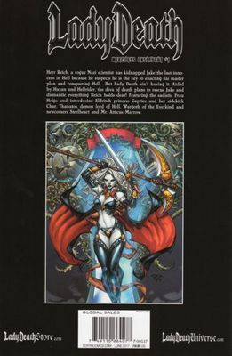 In this 48-page issue, Herr Reich—a rogue Nazi scientist—kidnaps Jake, the last innocent soul in Hell, believing him to be the key to enacting his master plan to conquer the underworld. Lady Death, determined to thwart Reich's ambitions, embarks on a perilous mission to rescue Jake. Aided by allies Haxan and Hellrider, she faces off against Reich's forces, including the sadistic Frau Helga. The story introduces new characters such as Steelheart and Mr. Atticus Marrow, while reintroducing familiar figures like Thanatos, Wargoth of the Everkind, and the Eldritch princess Caprice.